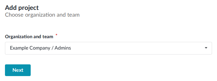 Select the organization team you'd like to create the project for. You must be on a team with