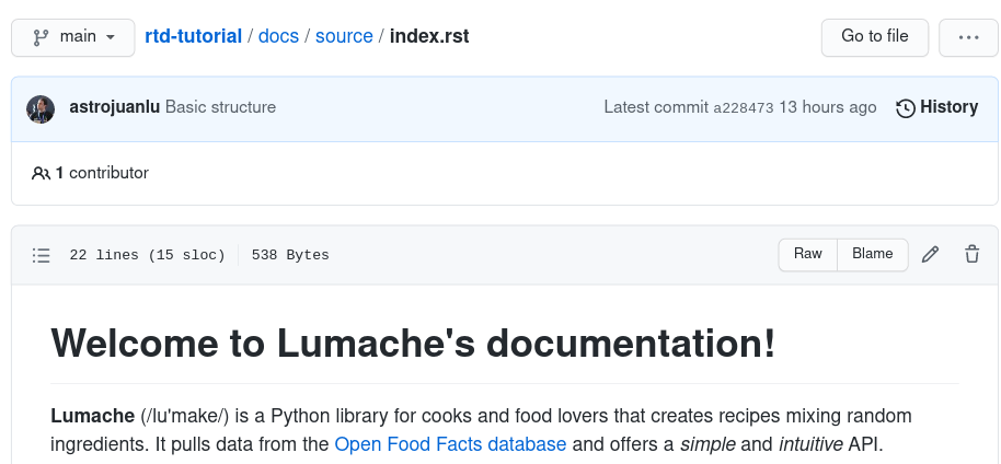 docs/source/index.rst, and clicking on the ✏️ icon on the top-right with the tooltip "Edit this file" to open a web editor (more information on their documentation).